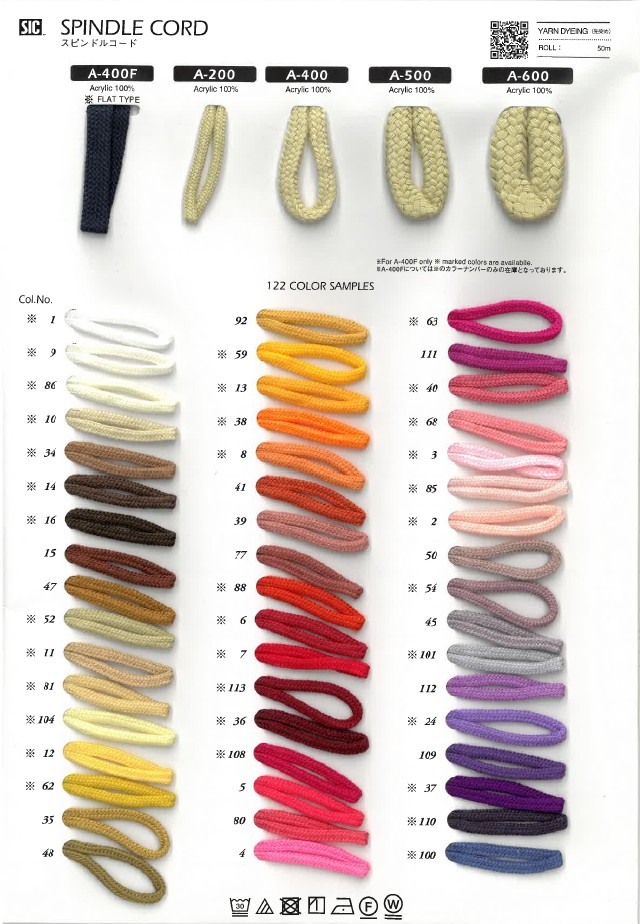 スタンダードなコードです。色数が多いので選びやすいです。巾着のコードとしても人気があります。