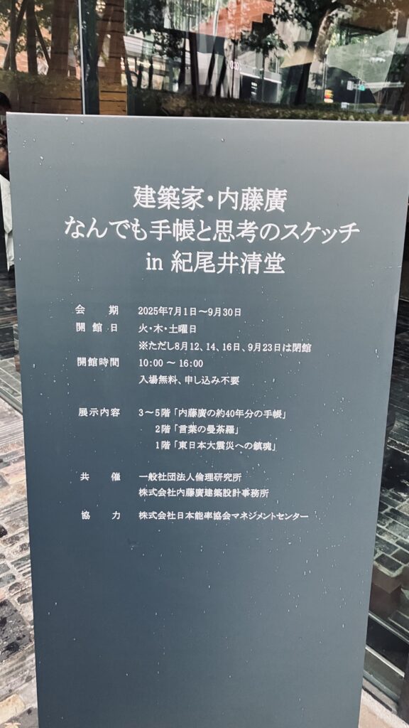 紀尾井清堂で開催中の「建築家・内藤廣〜なんでも手帳と思考のスケッチ」展へ行ってきました。