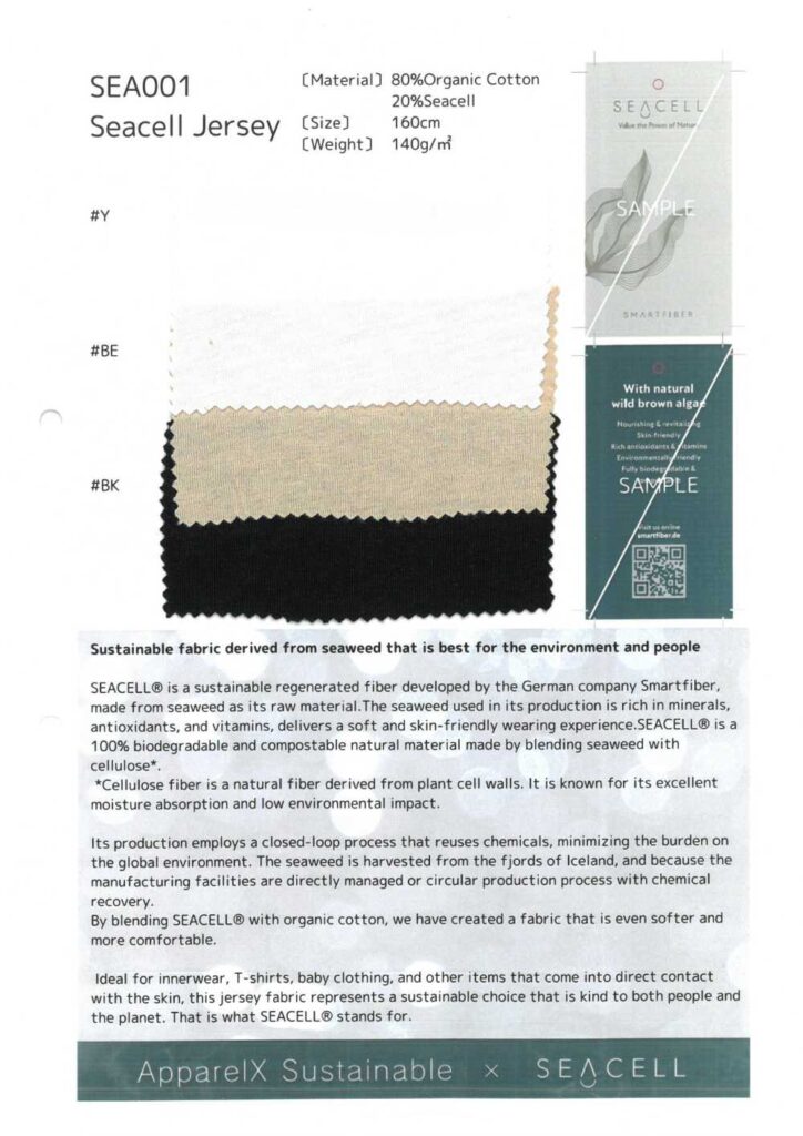 海藻を原料にした、再生セルロース繊維、SEACELL(シーセル)を使用しており、生地として国内での在庫販売は初です。
