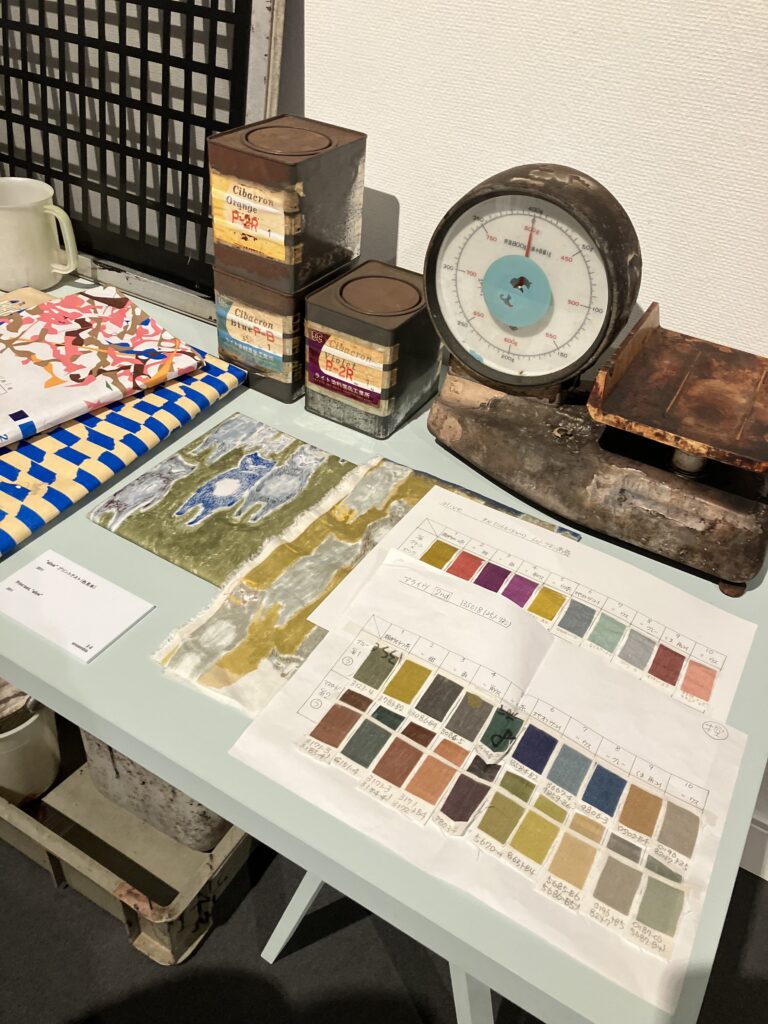 会場には、過去のアーカイブに加え、生地の原反、実際の制作で使用された道具までが展示され、一つのものが生まれるまでの工程を丁寧に追体験できる構成となっていました。