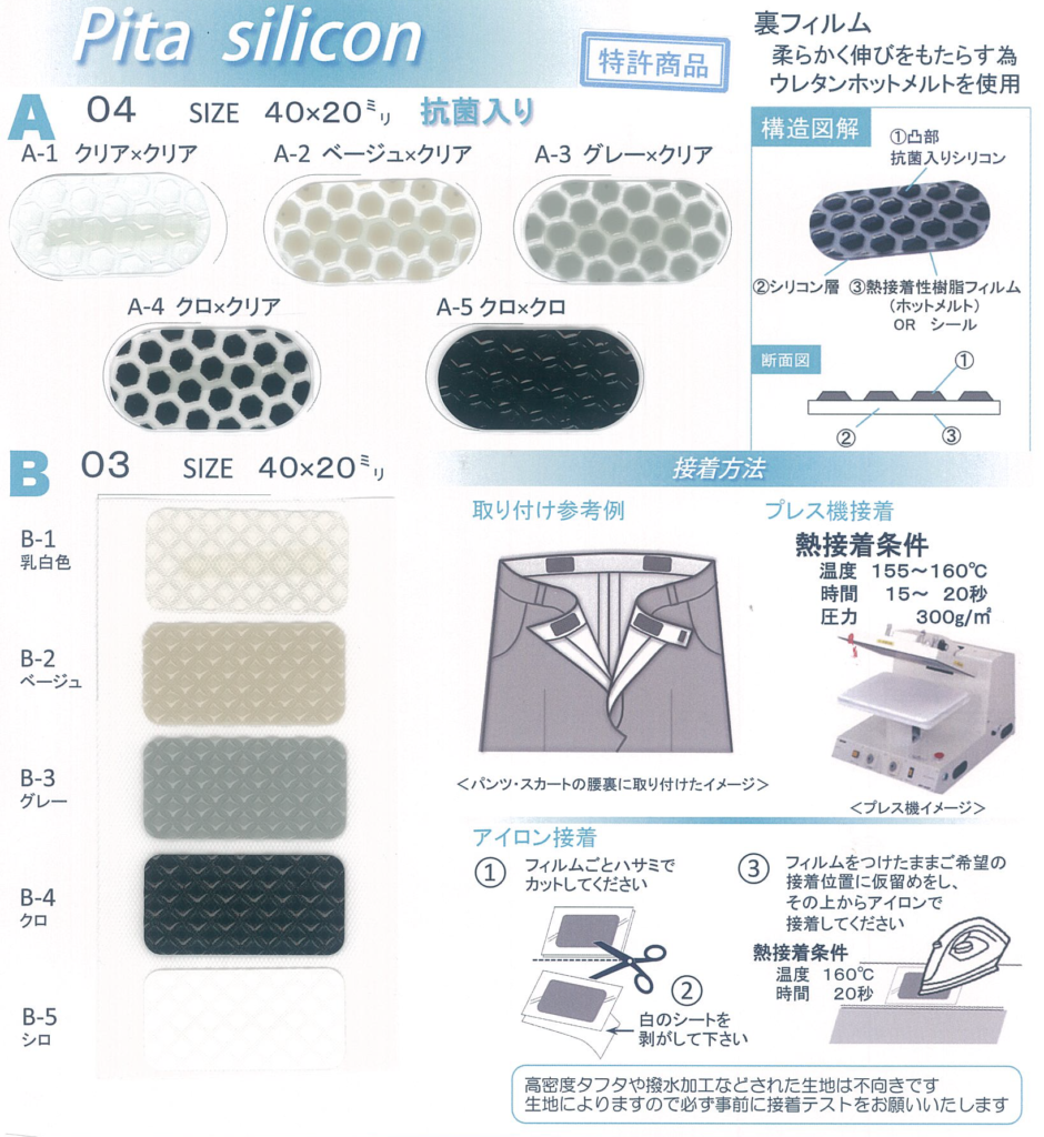 難接着素材など接着力がでにくい生地をご使用の場合は事前に接着試験を行って比較することをおすすめします。