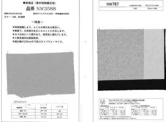 いつも使っている洗い対応芯地以外の厚さの品番を求められました