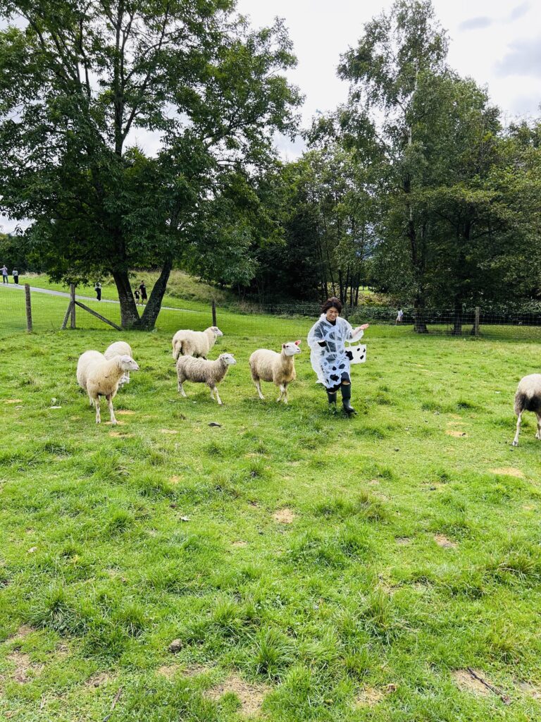 牧場エリアで羊やヤギにエサをやったり、温水プールがあったり、広い芝生の上で走り回ったり出来ました。