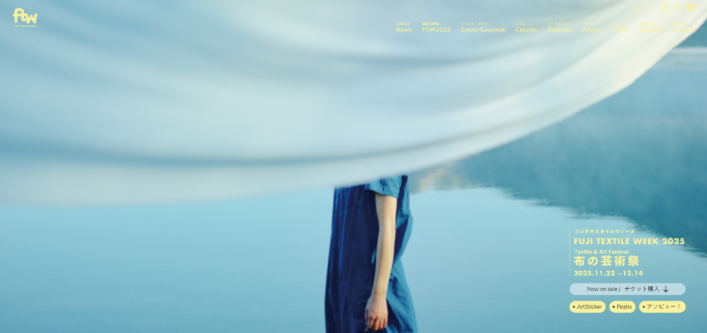 1000年以上続く織物の産地でもある山梨県富士吉田市の産業の歴史を根底に、伝統産業および地域活性を目的として2021年よりスタートした、テキスタイルと芸術が融合する国内唯一の布の芸術祭です。テキスタイルに光を当て、アートやデザインを通じて、テキスタイルの新たな可能性を模索し発見するイベントです。